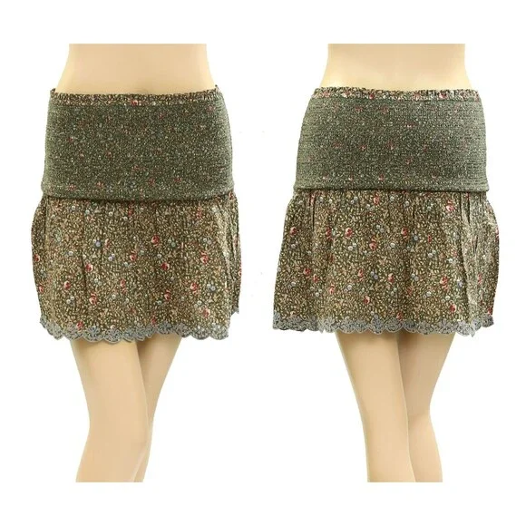 Guaranteed 100% Authentic & Never Before WornDescription:* High waisted* Pull-on style* Lace trim on skirt* Floral Printed* Tiered design* Fully linedMeasurements/item Details* Size - Small- 36* Waist - 14"across (Laying flat)* Length - 16.5"approx* Color -green* Fabric - CottonPlease note: This item is new without tags& Wash care.